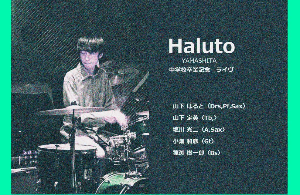 山下はると 中学校卒業記念 ライブ 3月 20日 (土曜日)説明:MC:予約3000円 当日3500円 +1drink+1Food〈税10%〉 山下はると〈Drs,Pf,Sax〉山下定英〈Tb,〉塩川光二〈A.Sax〉続きを読む “2021.3.20sat 山下はると 中学卒業記念ライヴ”