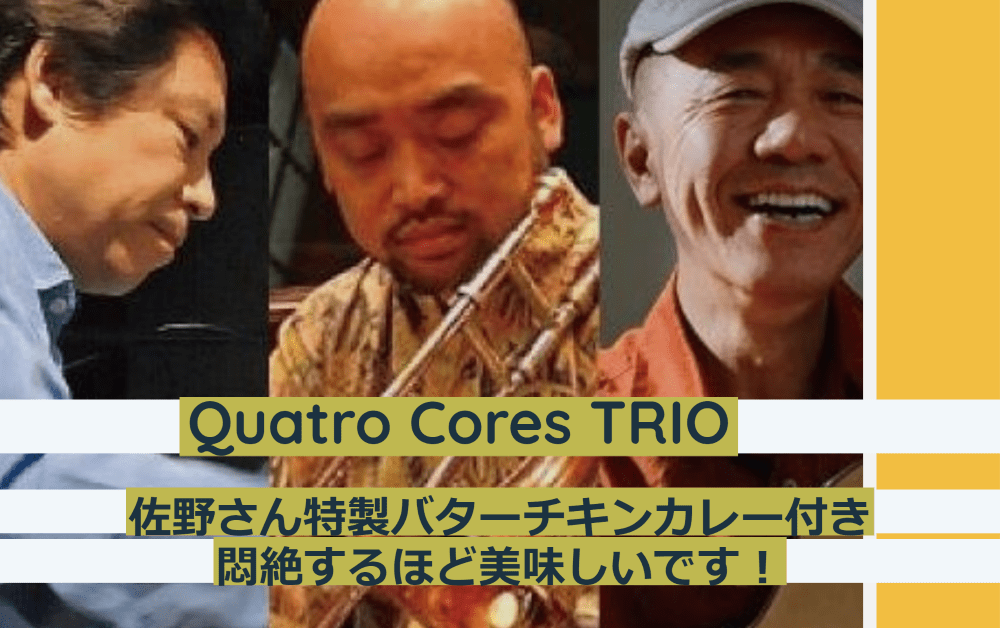 Open 18:30 / Start 19:30MC:¥4500+(税)(佐野聡特製バターチキンカレー付き) 《ブラジル音楽,オリジナル》 Quatro Cores Trio佐野聡(Tb./Fl./Harmonica)小続きを読む “2023.02.09(木) Quatro Cores Trio”