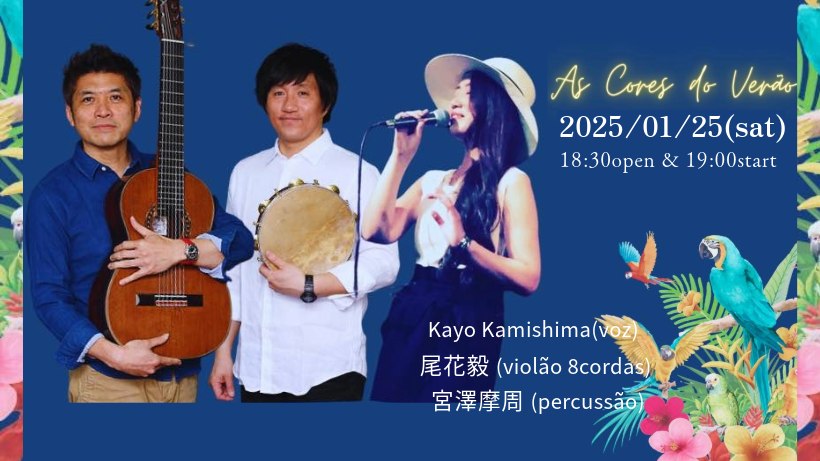 Open:18:30 Start :19:00 MC:予約2500円 当日3000円 +1drink+1Food〈税〉 Samba, Choro, MPB Kayo Kamishima(voz) 尾花毅(vio続きを読む “2025.01.25(土) Kayo Kamishima&尾花毅 feat.宮澤摩周 Live”