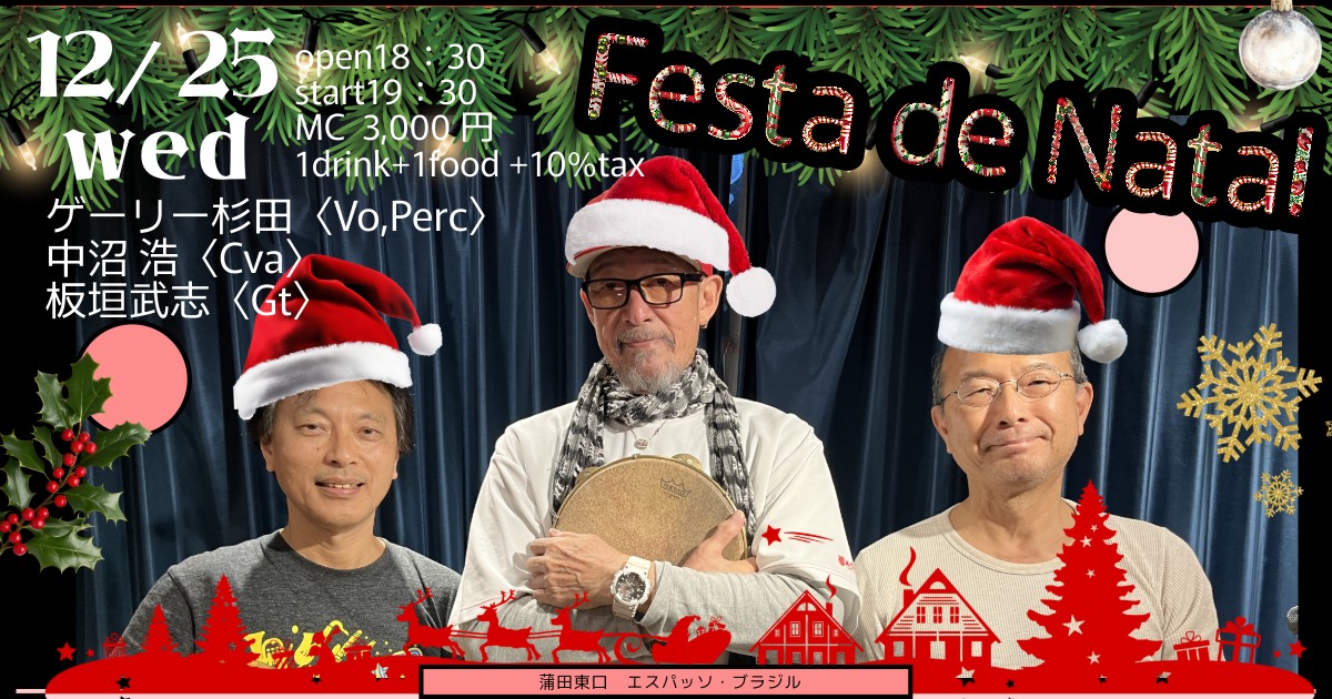 2024.12.25(水) ゲーリー杉田〈Vo,Perc〉& 板垣武志〈Gt〉& 中沼 浩〈Cva〉